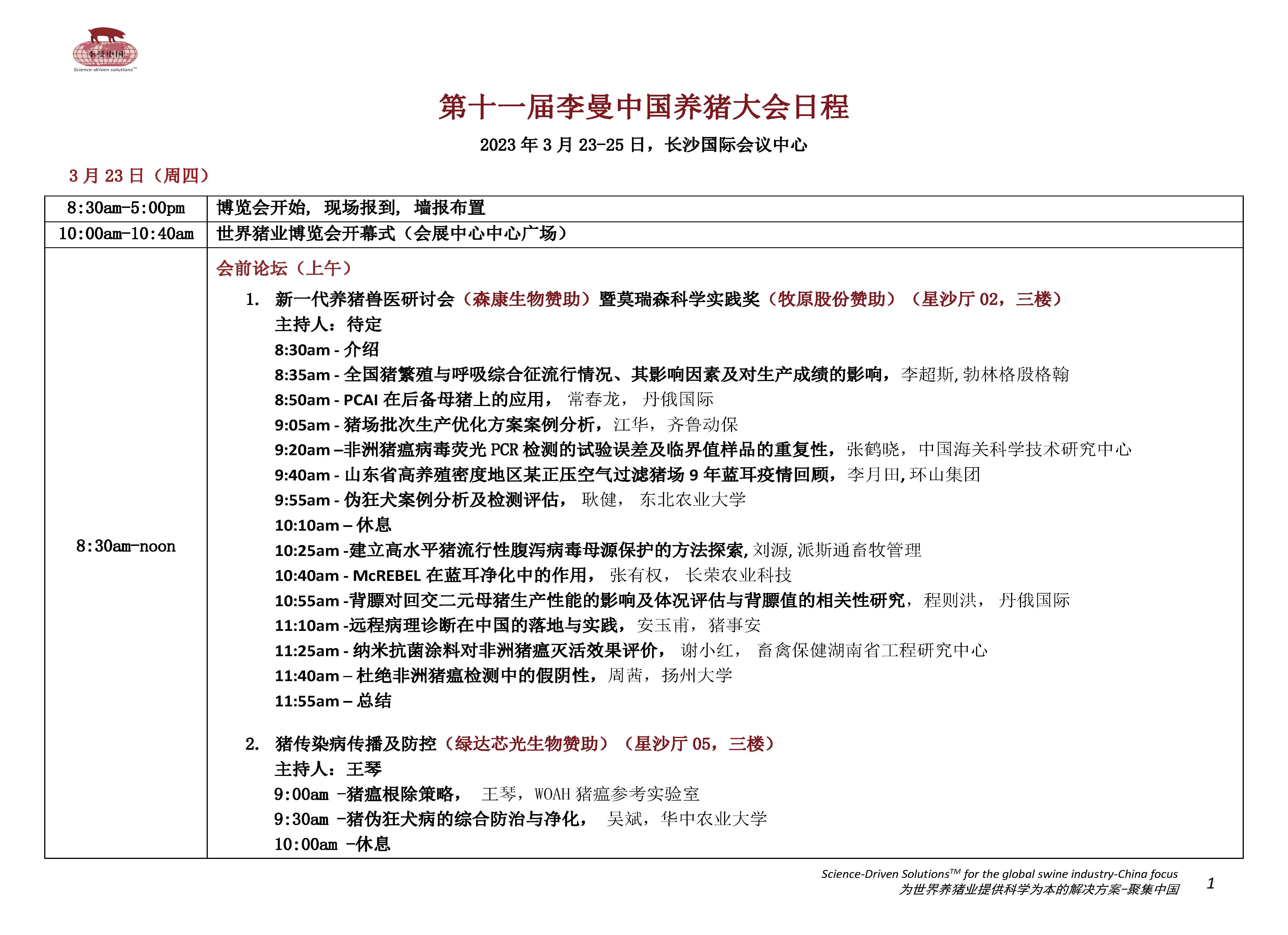 第十一屆李曼中國(guó)養(yǎng)豬大會(huì)暨世界豬業(yè)博覽會(huì)將于2023年3月23日-25日在長(zhǎng)沙國(guó)際會(huì)展中心舉行。
